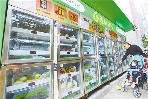 居民在無(wú)人智能生鮮柜前選購(gòu)蔬菜 張 濤攝(中經(jīng)視覺(jué))